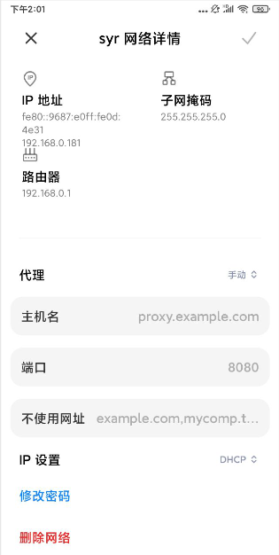 现在您的 Android 设备已经配置了 IP 代理。请注意,代理设置将仅应用于当前连接的 Wi-Fi 网络。如果您切换到其他网络,可能需要重新设置代理。